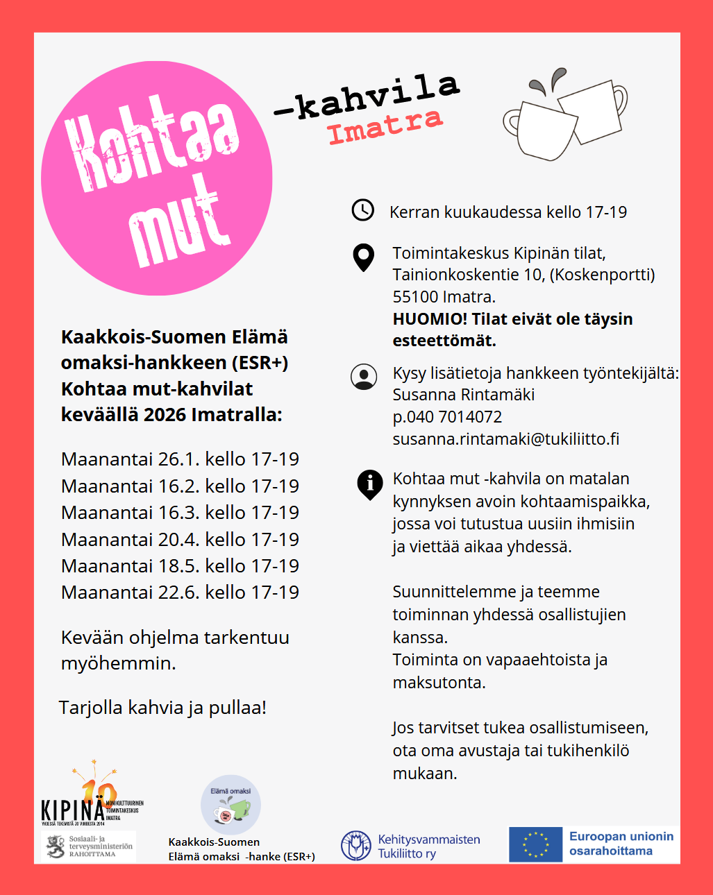 Kipinän kerhotoiminta on tauolla 16.12.2025 - 16.1.2026.