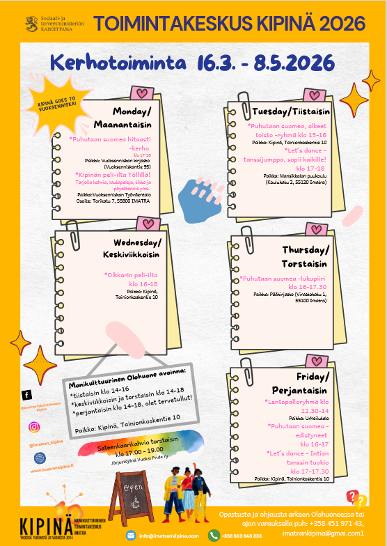 Toiminta on avoin, ilmainen eikä vaadi ilmoittautumista.
